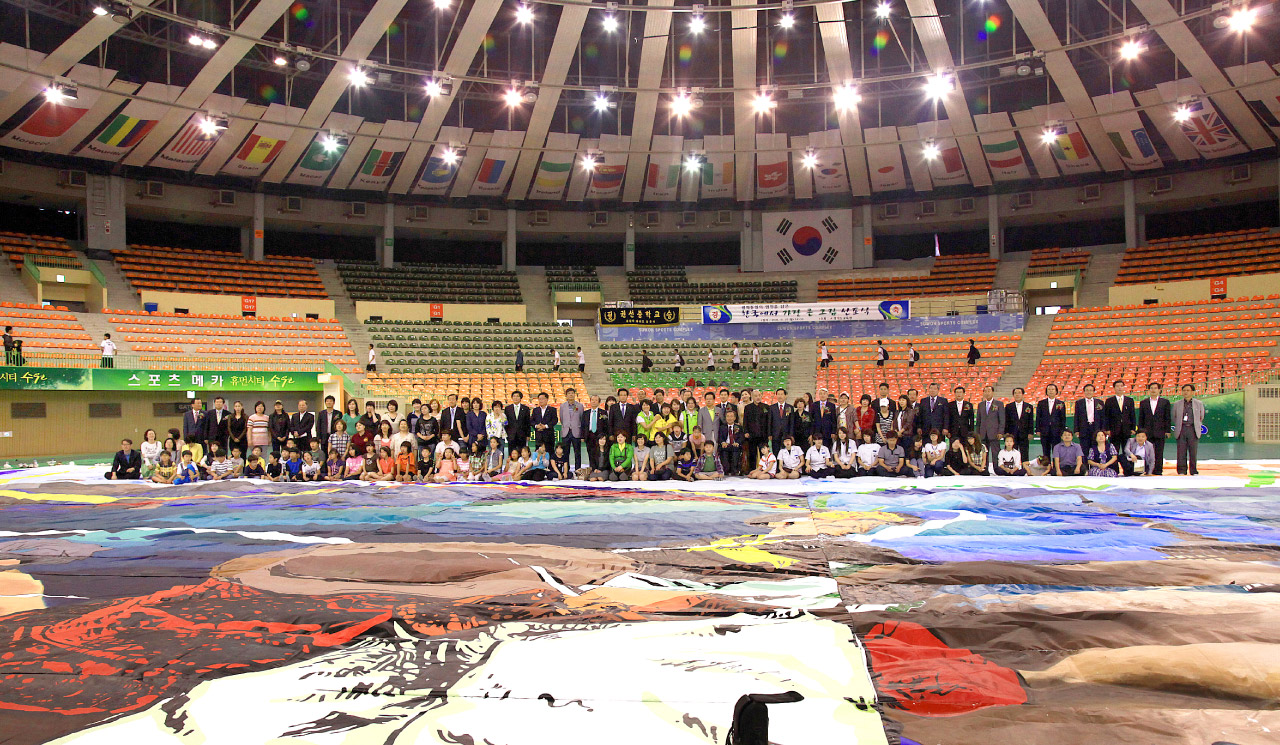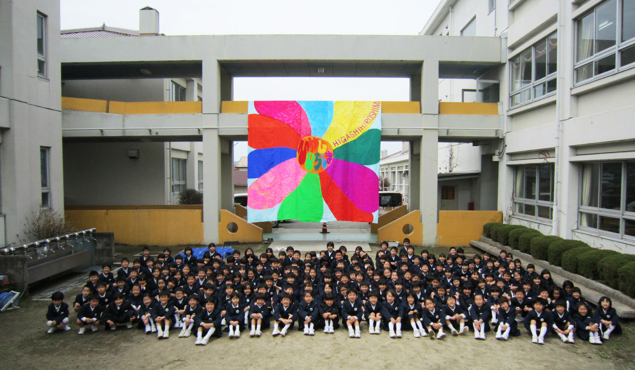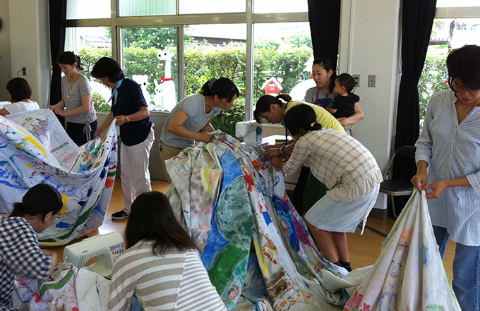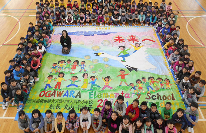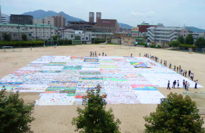 - July 2012, stitching and painting of the world's countries 68 picture of each city of Japan in Hiroshima Municipal Funakoshi kindergarten, Hiroshima Municipal Funakoshi was completed in the schoolyard of the elementary school “world's big picture 2012” showcase.